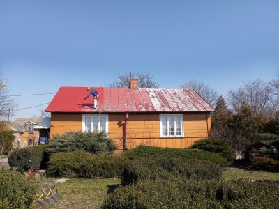 - zaprawkowe lub całkowite malowanie dachu antykorozyjną farbą podkładową – w zależności od stopnia korozji dachu stosujemy zaprawki (małe ogniska rdzy) lub całkowite malowanie (w przypadku renowacji starych, zaniedbanych dachów), zatrzymujące rozwój ognisk korozji;
