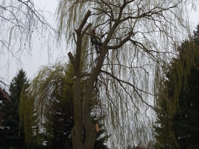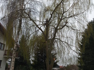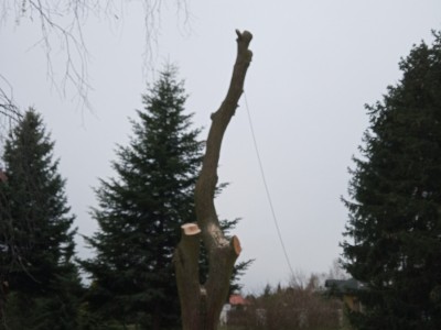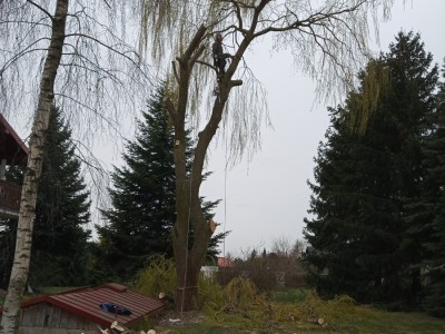 W dniu dzisiejszym firma Himalai podjęła się skomplikowanego zadania usunięcia wierzbę płaczącej, która rosła w bliskim sąsiedztwie studni oraz domu jednorodzinnego. Lokalizacja tego drzewa wymagała szczególnej uwagi i precyzyjnego planowania ze względu na obecność istotnych obiektów znajdujących się w pobliżu.